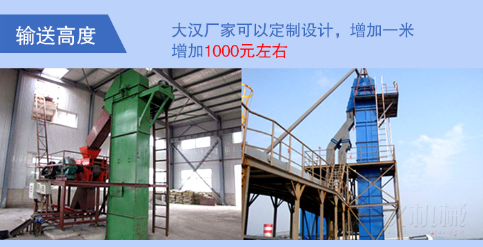大漢鏈斗式提升機可以按照用戶的輸送高度要求設計,一般情況下,增加一米,鏈斗式提升機價格就會增加1000元左右。