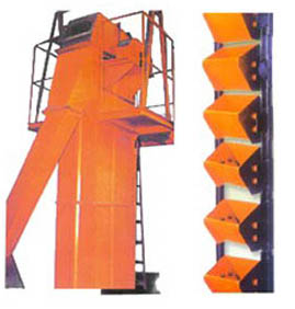 斗式提升機具有輸送量大,提升高度高,運行平穩(wěn)可靠,壽命長顯著優(yōu)點,提升機適于輸送粉狀,粒狀及小塊狀的無磨琢性及磨琢性小的物料,如:煤、水泥、石塊、砂、粘土、礦石等,由于提升機的牽引機構是環(huán)行鏈條,因此允許輸送溫度較高的材料。