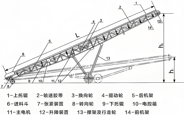 DY型移動式皮帶輸送機的產品結構: